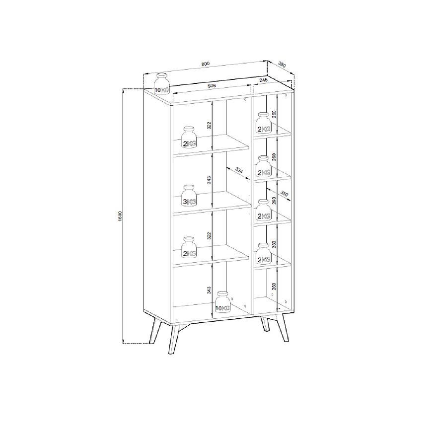 Regał został wyposażony w drzwi oraz półki, które pozwalają na przechowywanie różnorodnych przedmiotów, od książek i dekoracji po różnego rodzaju akcesoria. Dzięki zastosowaniu wysokiej jakości płyty wiórowej laminowanej, regał jest trwały i odporny na uszkodzenia, co sprawia, że będzie służył przez wiele lat.