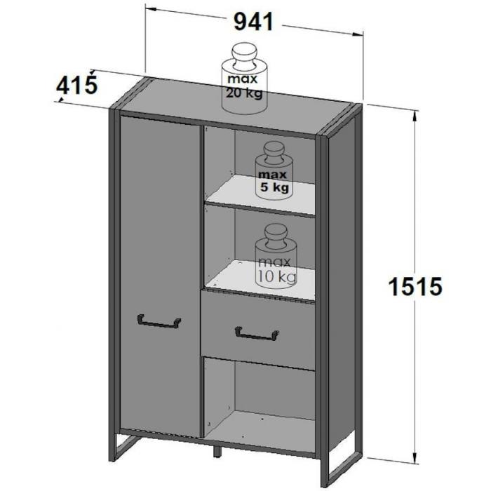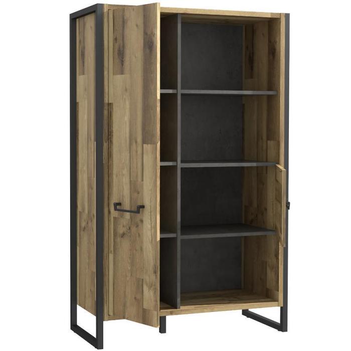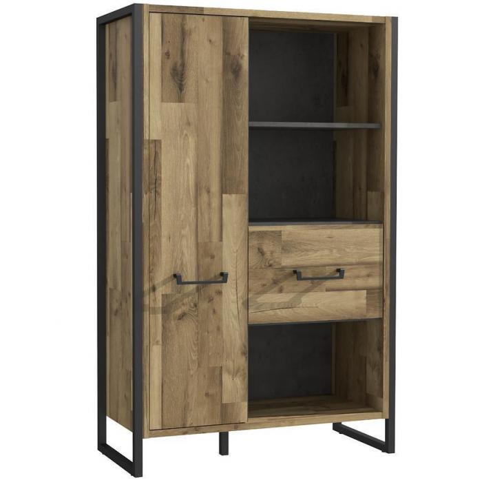 Regał Hud od producenta marki Forte to przykład na synergię nowoczesności z funkcjonalnością. Wnętrze za lewymi drzwiami kryje 3 półki, zaś prawa część to 3 otwarte oraz 1 ofrontowana wnęka.
