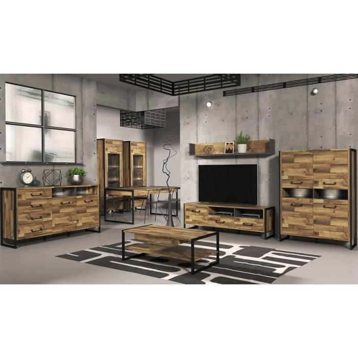 W skład kolekcji Hud wchodzą różne rodzaje mebli, co pozwala na kompleksowe urządzenie Twojego pokoju dziennego według własnych potrzeb i preferencji. Możesz wybierać spośród komód dwudrzwiowych z czterema szufladami, biurek z zamykanymi szafkami i szufladami, regałów jednodrzwiowych z szufladami i półkami, regałów z trzema szufladami i półkami, półek ściennych wiszących, stołów jadalnianych, stolików kawowych z półkami pod blatem, szaf dwu- i czterodrzwiowych, szafek RTV jednodrzwiowych z dwoma szufladami, a także witryn jednodrzwiowych z przeszklonymi drzwiami. Meble są nie tylko piękne, ale także bardzo funkcjonalne, dzięki czemu Twój pokój dzienny będzie pełen harmonii.