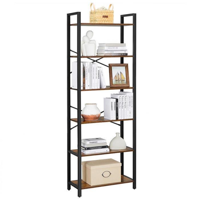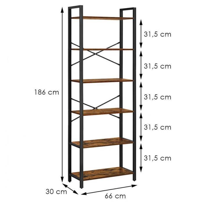 Regał idealnie wpasuje się w aranżacje, nadając przy tym industrialny design. Jest to praktyczny mebel, który uporządkuje Twoje książki, kwiaty, ramki ze zdjęciami bądź inne drobiazgi. Będzie pasował do przedpokoju, salonu, biura lub do innego, dowolnego pomieszczenia. Posiada 6 półek, które zapewnią wystarczającą ilość miejsca. Dzięki swojej konstrukcji jest stabilny oraz wytrzymały.