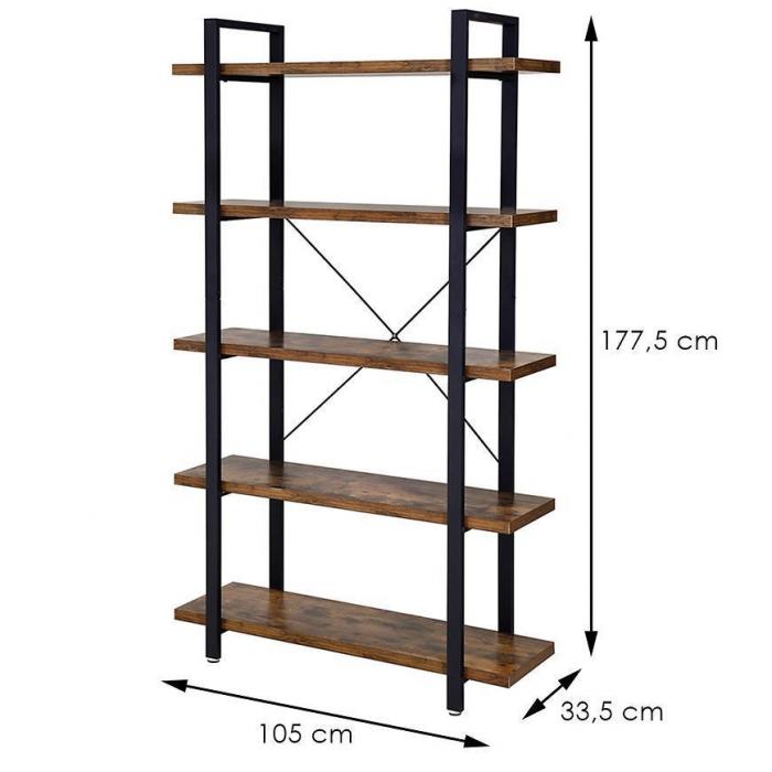 Regał idealnie wpasuje się w aranżacje, nadając przy tym industrialny design. Jest to praktyczny mebel, który uporządkuje Twoje książki, kwiaty, ramki ze zdjęciami bądź inne drobiazgi. Będzie pasował do przedpokoju, salonu, biura lub do innego, dowolnego pomieszczenia. Posiada 5 półek, które zapewnią wystarczającą ilość miejsca. Dzięki swojej konstrukcji jest stabilny oraz wytrzymały.