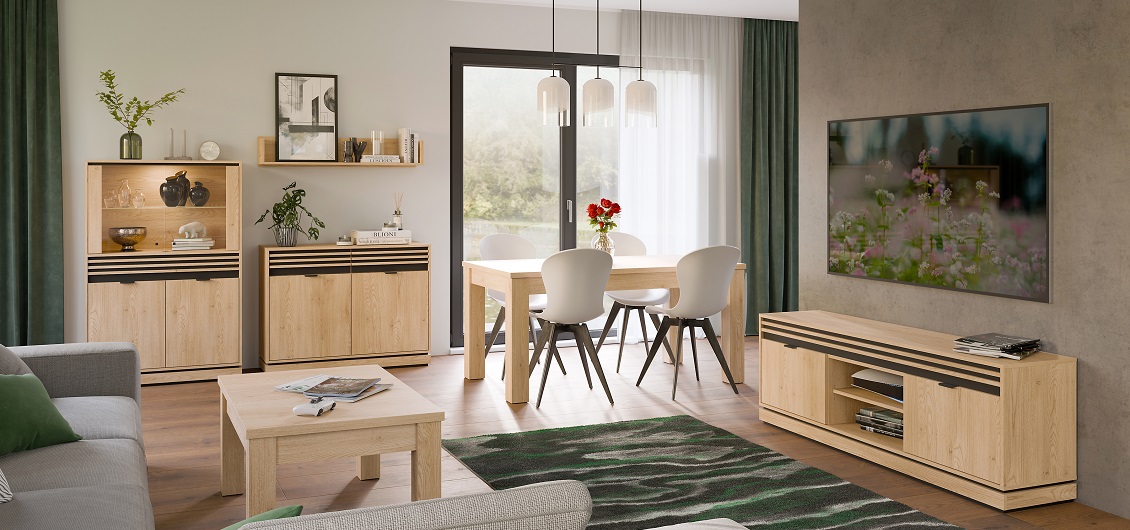W skład kolekcji wchodzą m.in. łóżka, szafka nocna, komody i szafy ubraniowe, zaprojektowane z myślą o codziennym komforcie użytkowania. Szuflady z prowadnicami kulkowymi i pełnym wysuwem gwarantują łatwy dostęp do przechowywanych przedmiotów, a mechanizm push-to-open w górnych drzwiach i szufladach pozwala na intuicyjne otwieranie bez potrzeby stosowania uchwytów – wystarczy lekki nacisk.