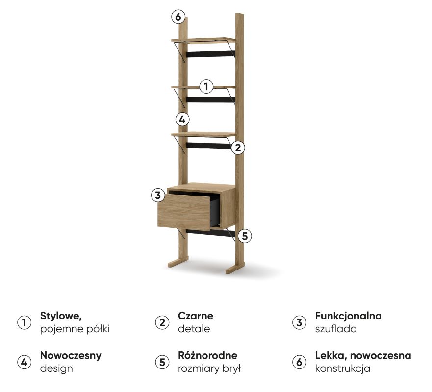 Regał jednodrzwiowy z półkami Ollie OL-02.