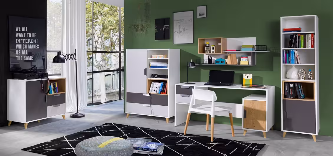 Kolekcja mebli Joker to nie tylko funkcjonalność, ale także dbałość o detale. Zestawienie różnych stylów, tworzy spójną i inspirującą przestrzeń młodzieżowego pokoju, w której funkcjonalność idzie w parze z estetyką.