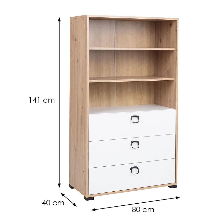 Regał Kevin w stylu nowoczesnym to uniwersalna, klasyczne bryła, które wpiszą się świetnie w każdą z aranżacji, nie tylko będzie miejscem na pamiątki czy inne ozdoby, ale także praktycznym miejscem do przechowywania np. książek. Idealnie będzie pasować do pokoju młodzieżowego, uzupełniając całość serii Kevin.