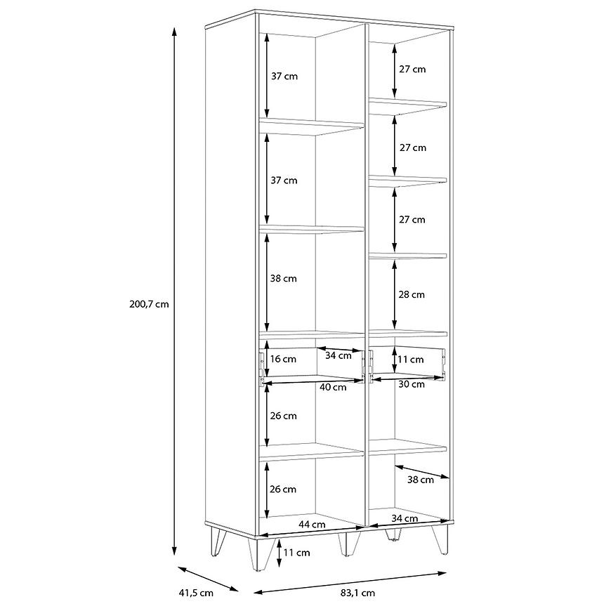 Regał Liona LYAR721-M687 to funkcjonalne i eleganckie rozwiązanie do przechowywania, które wniesie nowoczesny akcent do Twojego wnętrza. Jego imponujące wymiary to 200,7 cm wysokości, 83,1 cm szerokości i 41,5 cm głębokości, co zapewnia dużą przestrzeń do organizacji i wyeksponowania Twoich ulubionych przedmiotów.