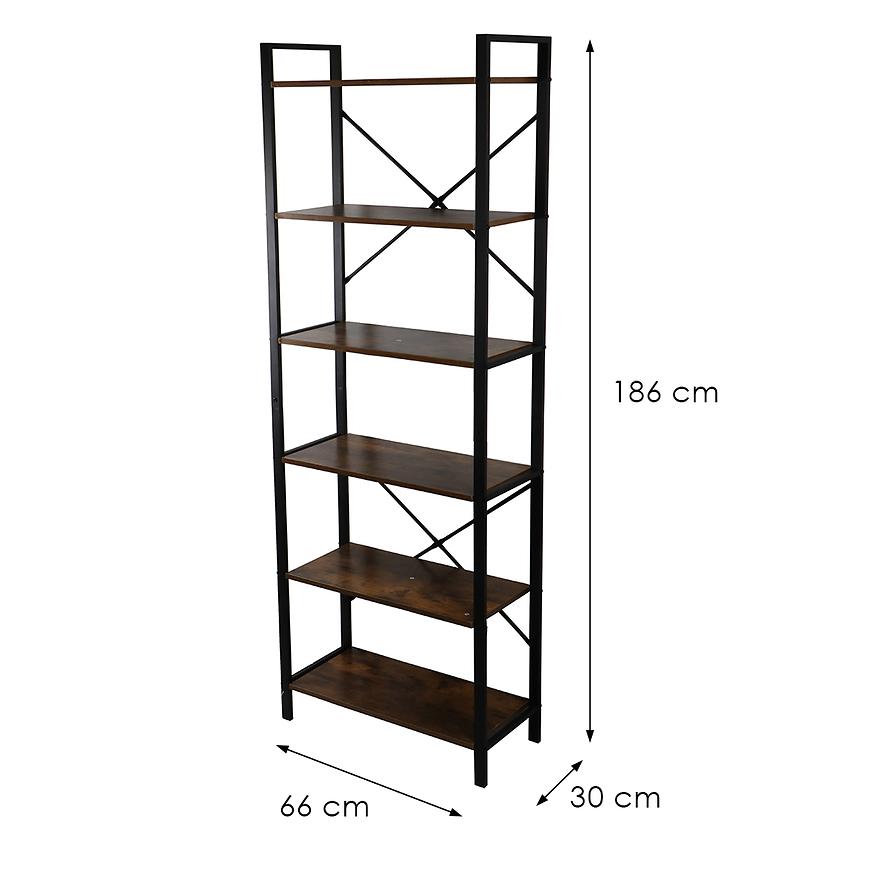 Regał Loft w kolorze dark vintage wood/czarny to idealne połączenie industrialnego stylu loftowego z funkcjonalnością i solidnością. Jego matowe wykończenie nadaje mu elegancji i niezwykłej głębi. Konstrukcja regału opiera się na solidnej płycie wiórowej laminowanej, która gwarantuje trwałość i odporność na uszkodzenia, podczas gdy metalowy stelaż dodaje mu charakterystycznego industrialnego uroku.