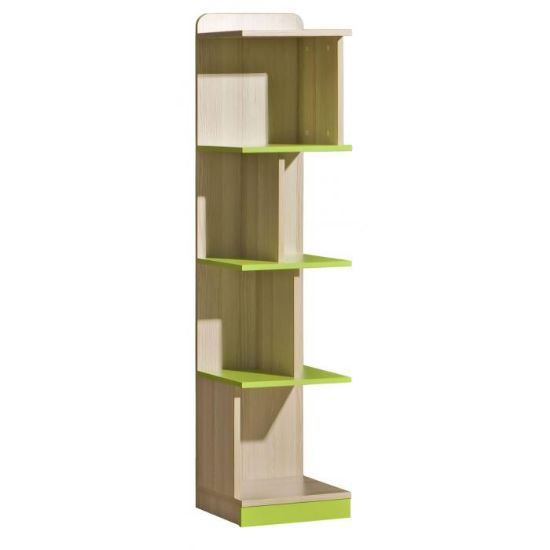 Otwieranie szafek może czasem sprawiać problemy, gdy obydwie dłonie są zajęte, stąd dobrym pomysłem dla ludzi, którzy mają pełne ręce roboty, może być Regał Lorento L15, przypominający stojak ze swobodnie rozmieszczonymi półeczkami. Żadnego zamykania i otwierania, żadnych uchwytów, po prostu daną rzecz kładzie się tu w odpowiedniej wnęce. Bardzo interesującego, świeżego, owocowego charakteru nadają temu meblowi półki zabarwione na limonkowy kolor. Resztę mebla wykonano w jesionowej barwie coimbra. Regał Lorento L15 ze swoim unikalnym stylem pasowałby do odważnie zaprojektowanych przestrzeni, w których jest dużo roślin i zieleni. Idealnie nadawałby się także jako regał na ulubione książki.