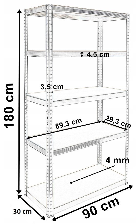max. obciążenie na półkę: 175kg (razem 875kg na cały regał)