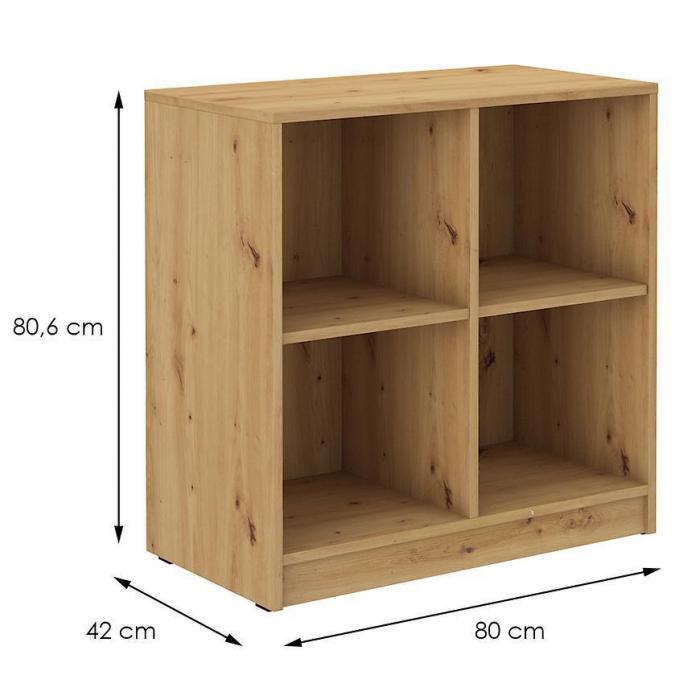 Regał Malta to klasyczny regał, który sprawdzi się nie tylko do biura czy pokoju młodzieżowego, ale także do innych pomieszczeń. Regał można przeznaczyć na książki, segregatory, zabawki oraz inne dowolne przedmioty. Mebel wykonany został z płyty wiórowej laminowanej. Regał w kolorze dąb artisan.