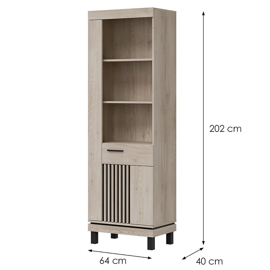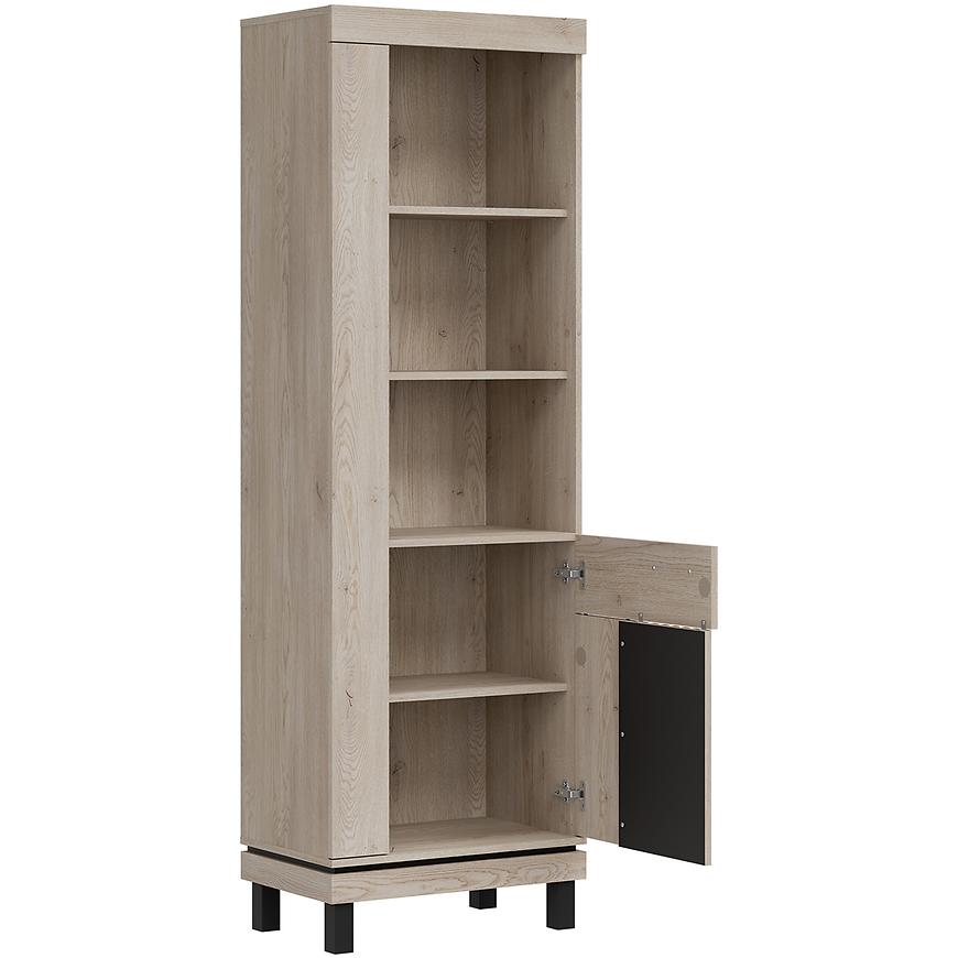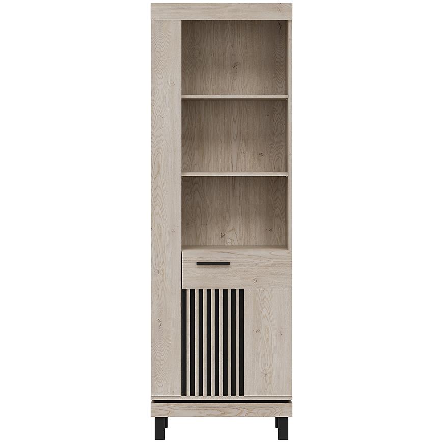 Regał został zaprojektowany w eleganckiej kolorystyce dąb cremona cotta/czarnymi , co nadaje meblowi wyrazisty, a zarazem uniwersalny charakter. Matowe wykończenie podkreśla nowoczesny styl regału, wpisując się w aktualne trendy aranżacyjne.