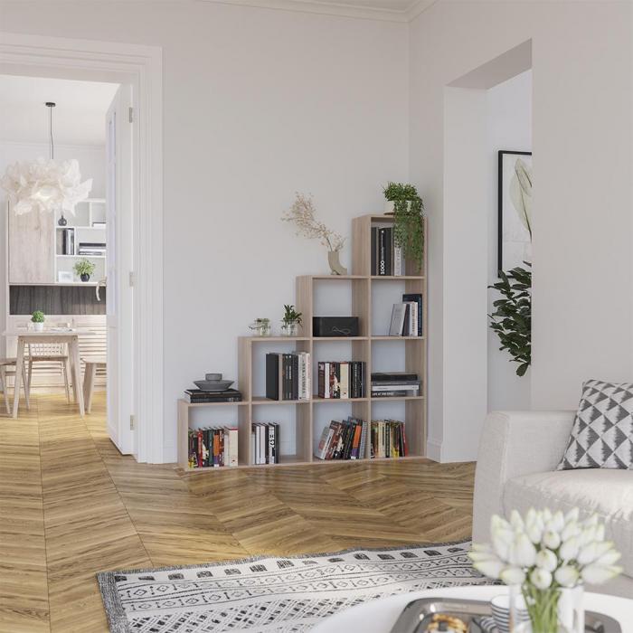 Regał Max dąb sonoma idealnie wpasuje się w aranżacje, nadając przy tym klasyczny oraz ciekawy design. Jest to praktyczny mebel, który uporządkuje Twoje książki, kwiaty, ramki ze zdjęciami bądź inne drobiazgi. Będzie pasował do przedpokoju, salonu, biura lub do innego, dowolnego pomieszczenia. Posiada 10 półek, które zapewnią wystarczającą ilość miejsca. Dzięki swojej konstrukcji jest stabilny oraz wytrzymały.