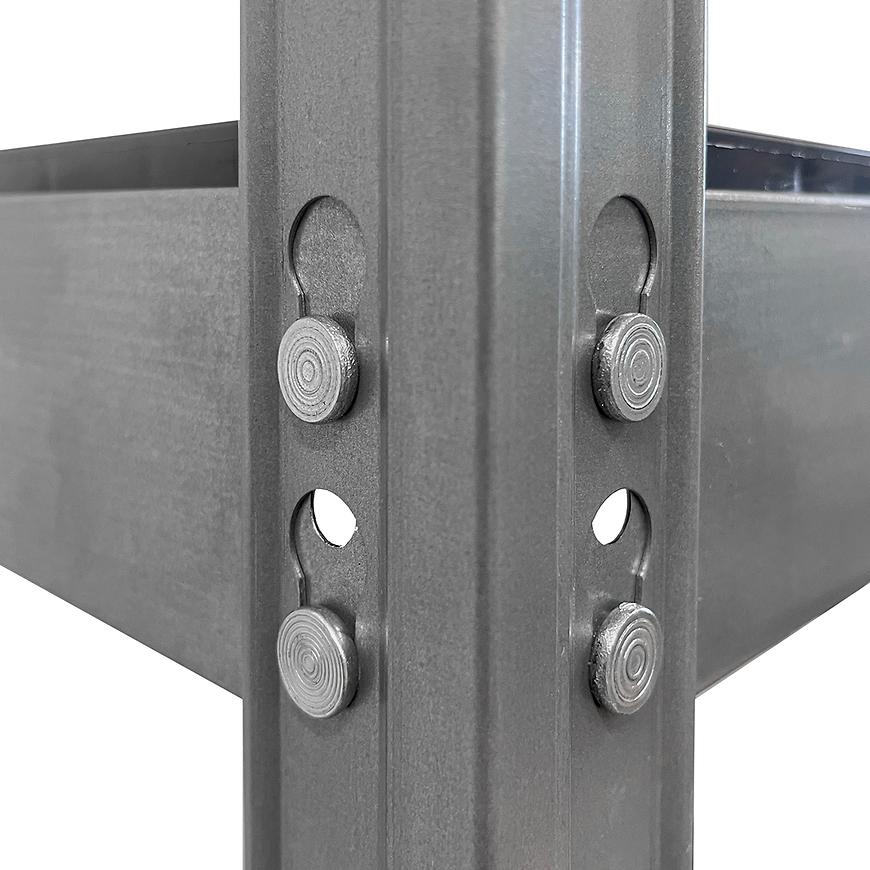 Wysokość półek wynosząca 5 cm pozwala na swobodne rozmieszczenie przedmiotów, a nitowana konstrukcja gwarantuje trwałość i stabilność nawet przy większym obciążeniu.