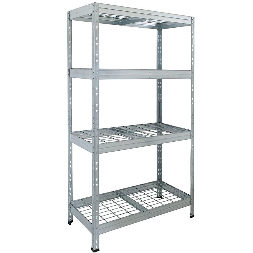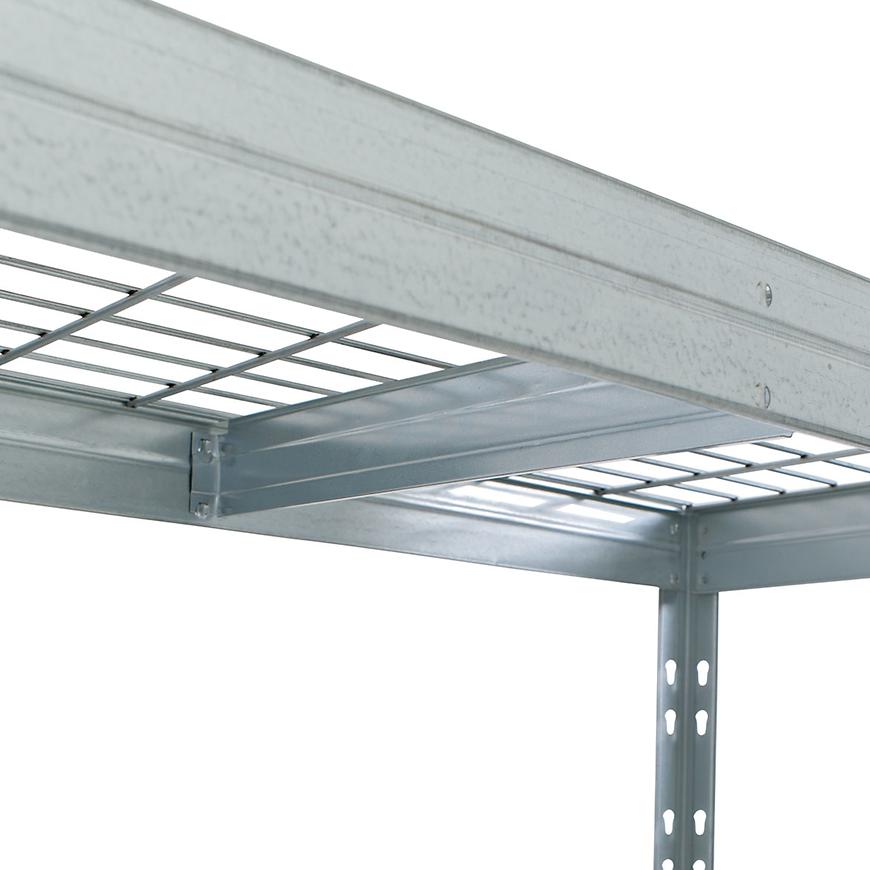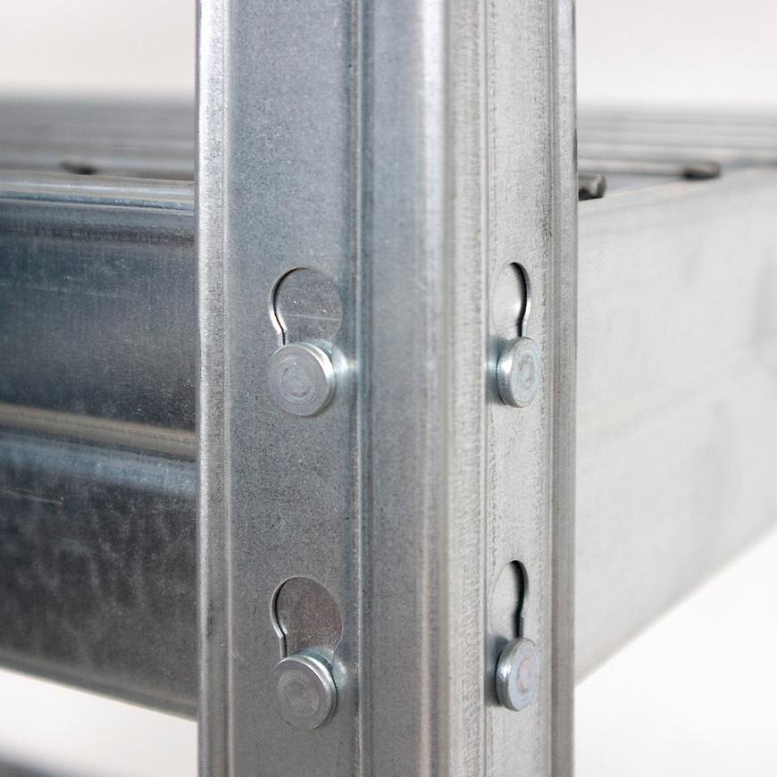 Regał został wykonany z trwałej i odpornej na korozję stali ocynkowanej, co gwarantuje jego długą żywotność. Wykończenie ocynkowe nadaje mu surowy, industrialny wygląd i zapewnia ochronę przed rdzą oraz uszkodzeniami mechanicznymi.