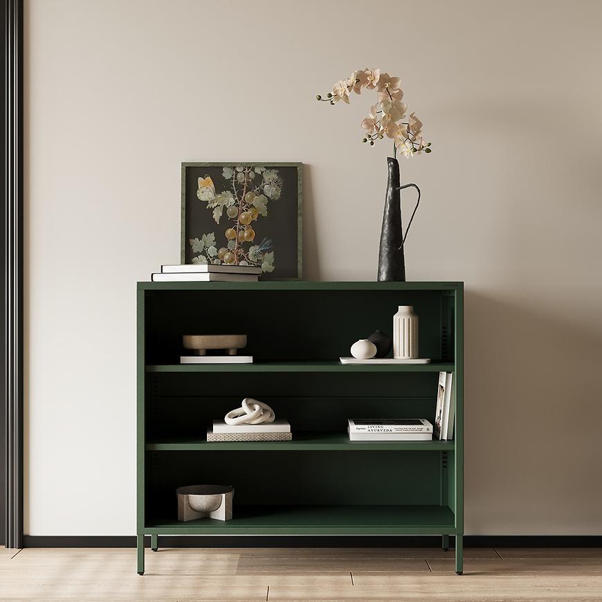 Regał metalowy niski Luca Modern Bottle Green – elegancki akcent do salonu.