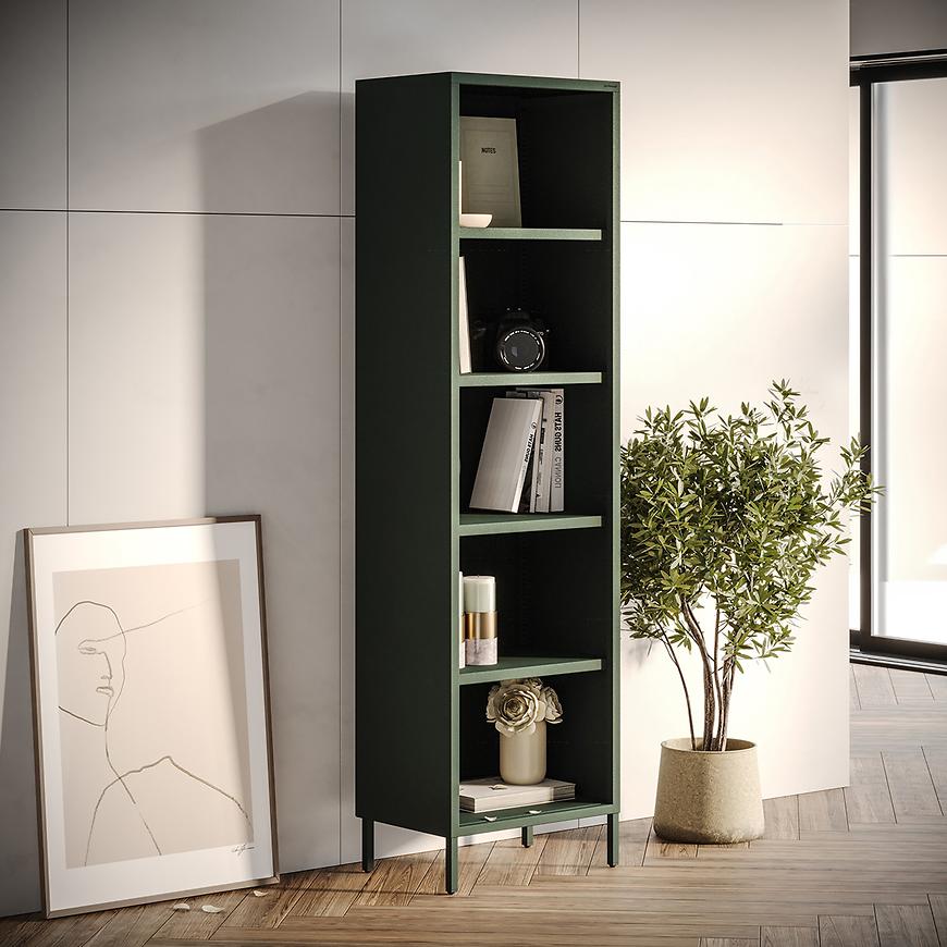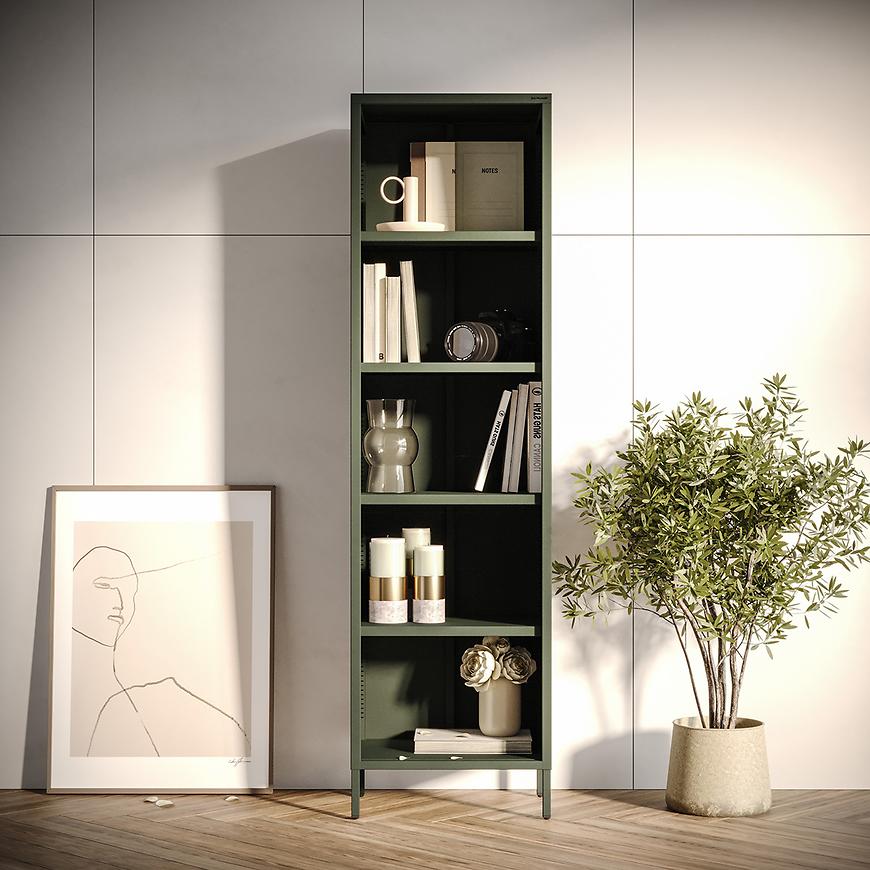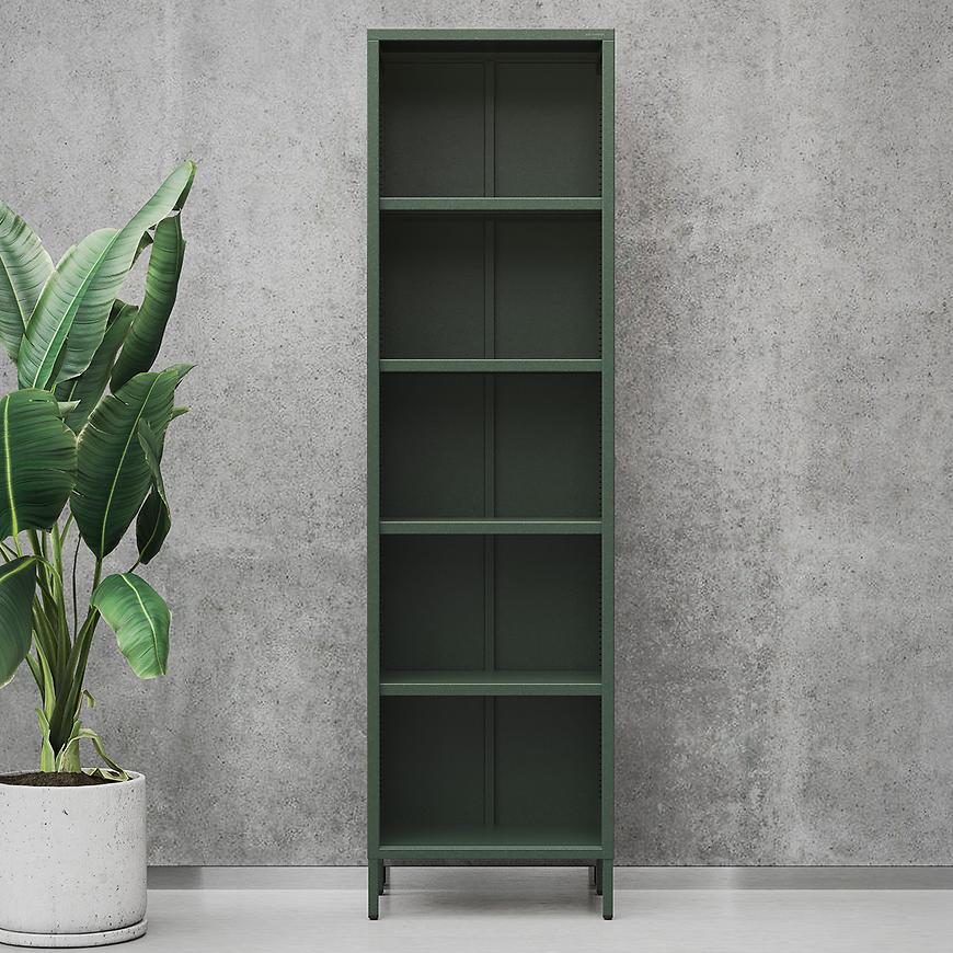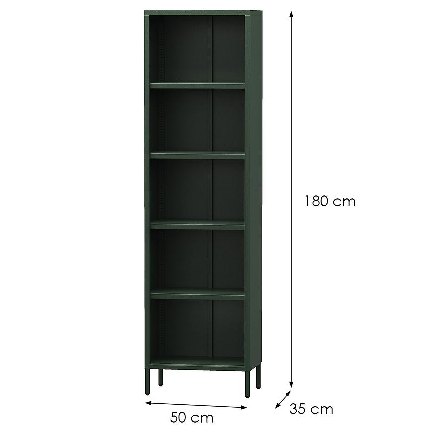 Regał metalowy wysoki Mario Modern Bottle Green – nowoczesna forma do salonu i pokoju młodzieżowego.