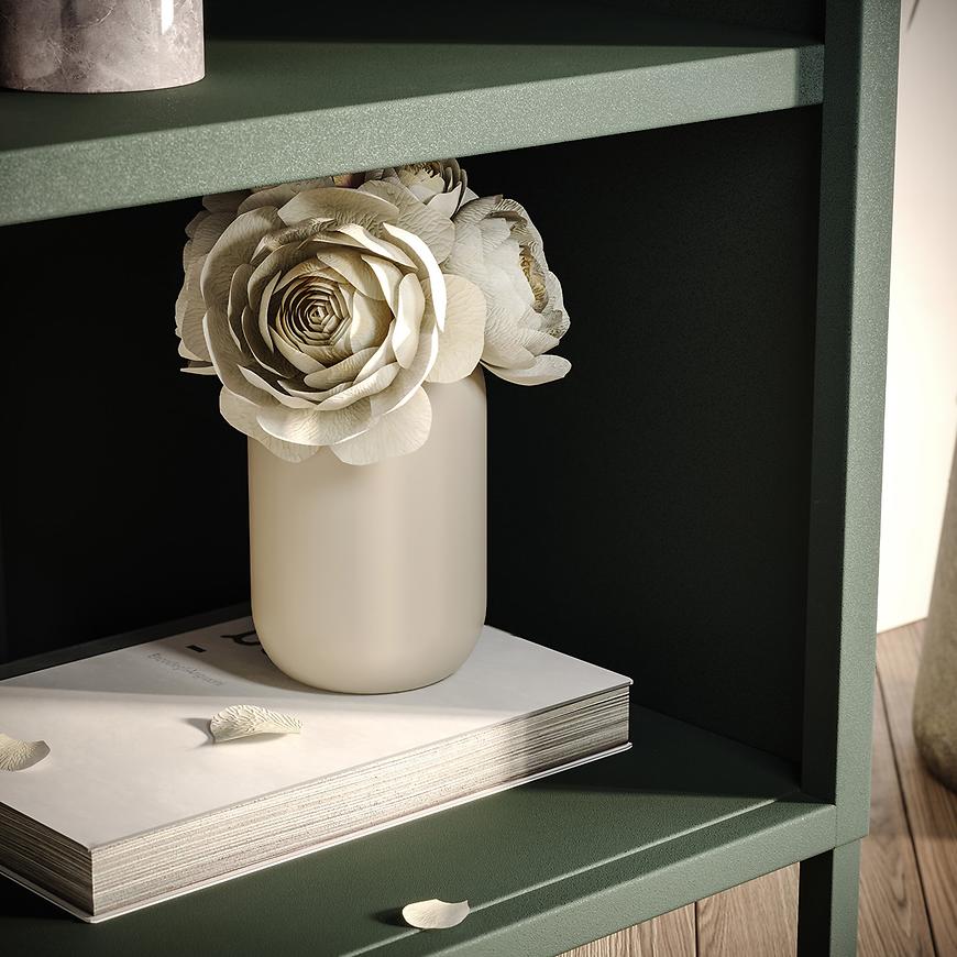 Wysoki regał Mario w eleganckim odcieniu Bottle Green to funkcjonalny mebel, który sprawdzi się zarówno w salonie, jak i w pokoju młodzieżowym. Solidna metalowa konstrukcja gwarantuje trwałość, a smukły, otwarty design doskonale nadaje się do przechowywania książek, dekoracji czy sprzętu. Głęboka zieleń dodaje wnętrzu charakteru i świetnie komponuje się z nowoczesnymi i loftowymi aranżacjami.