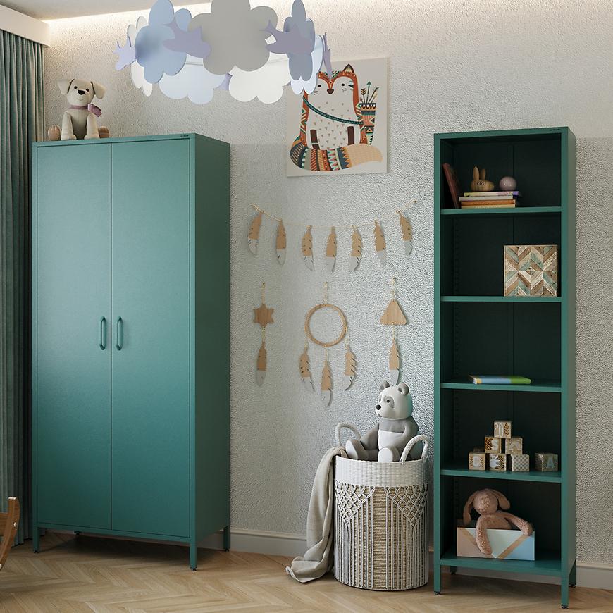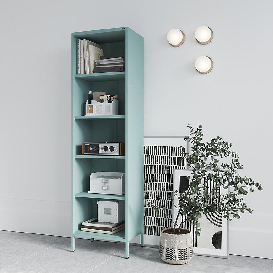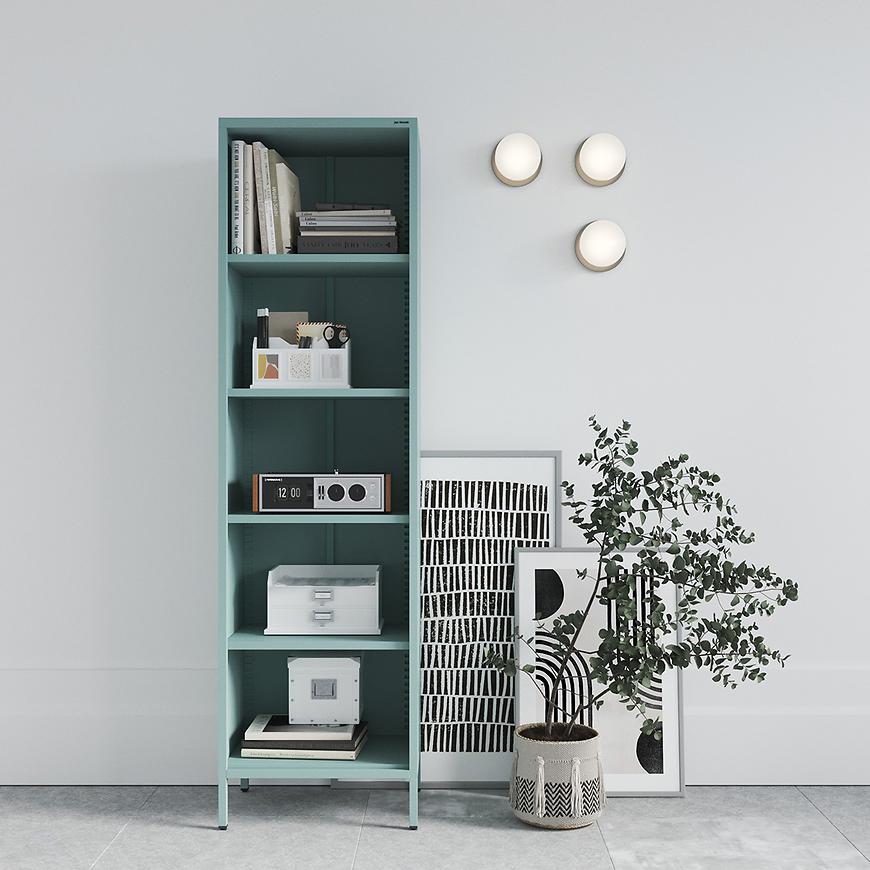 Regał metalowy wysoki Mario Modern Sea Green – nowoczesne rozwiązanie do salonu i pokoju młodzieżowego.