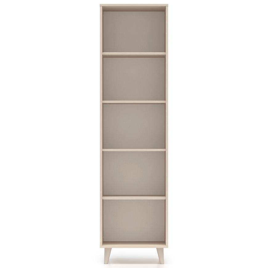 Dzięki smukłej, pionowej formie doskonale sprawdzi się również w mniejszych pomieszczeniach. Postaw na ponadczasowy design i trwałość z regałem Mevel – meblem, który łączy styl i funkcjonalność.
