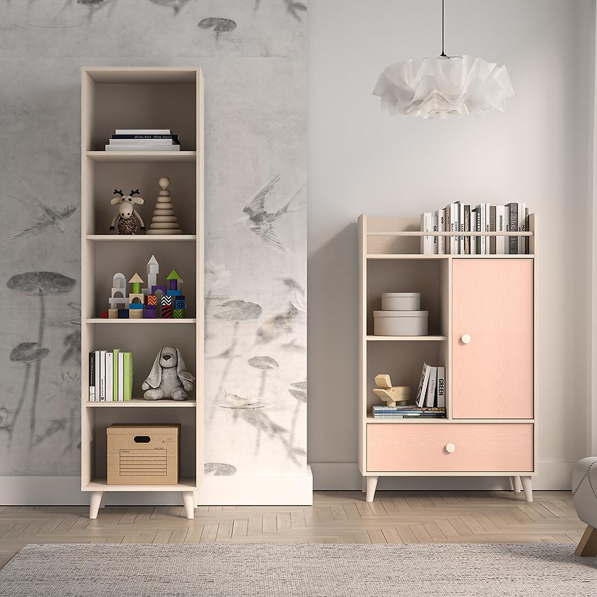 Pastelowe różowe fronty w połączeniu z piaskowym korpusem tworzą przyjazne wnętrze, które wspiera kreatywność dziecka i sprzyja wypoczynkowi. Dzięki stonowanej kolorystyce, meble będą pasować zarówno do pokoju małej dziewczynki, jak i starszego dziecka, które potrzebuje bardziej „dorosłego” otoczenia.