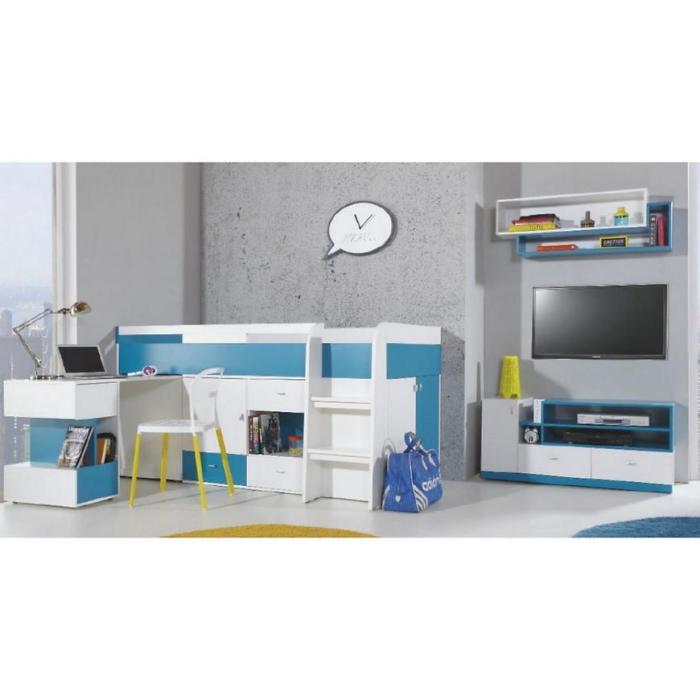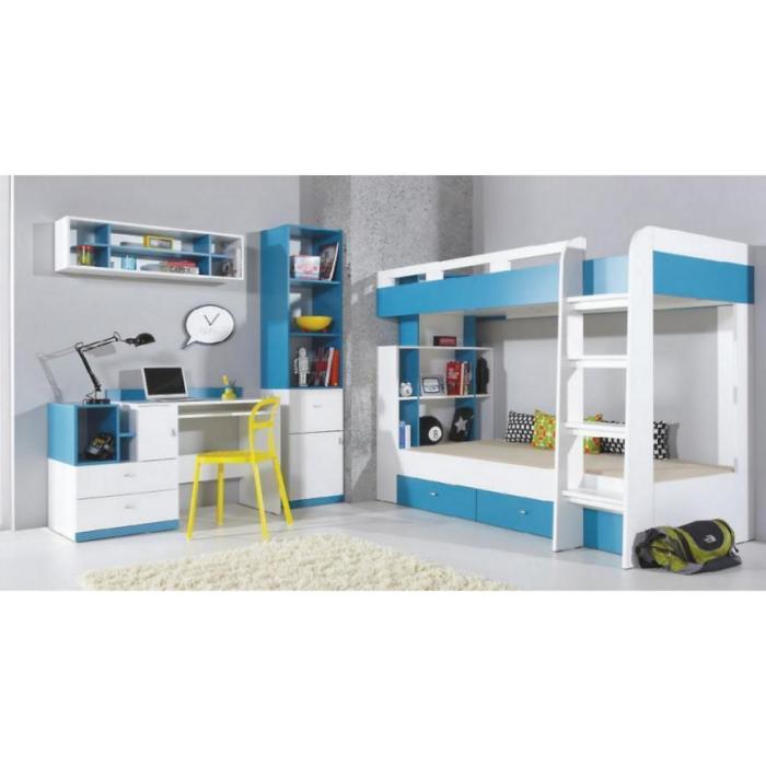 Kolekcja mebli do pokoju młodzieżowego Mobi to harmonijne połączenie funkcjonalności i estetyki, spełniające oczekiwania zarówno zwolenników nowoczesnego designu, jak i miłośników klasycznej elegancji. Wykonane z trwałej płyty wiórowej laminowanej, meble oferują nie tylko trwałość, ale także atrakcyjny wygląd. Kolekcja Mobi wyróżnia się subtelnym białym dekorem, który uzupełniony jest odważnymi akcentami w kolorze turkusowym, nadając wnętrzu świeżości i energii.