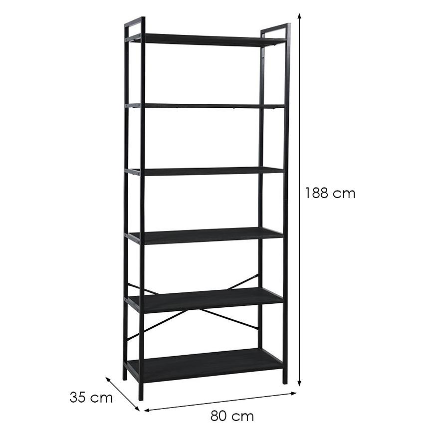 Regał Modesto 31365A-6(W80) Czarny 6T to imponujący mebel, który łączy w sobie funkcjonalność z rustykalnym urokiem. Z szerokością 80 cm, wysokością 188 cm i głębokością 35 cm, ten regał nie tylko oferuje dużo miejsca do przechowywania, ale także stanowi efektowny element dekoracyjny.