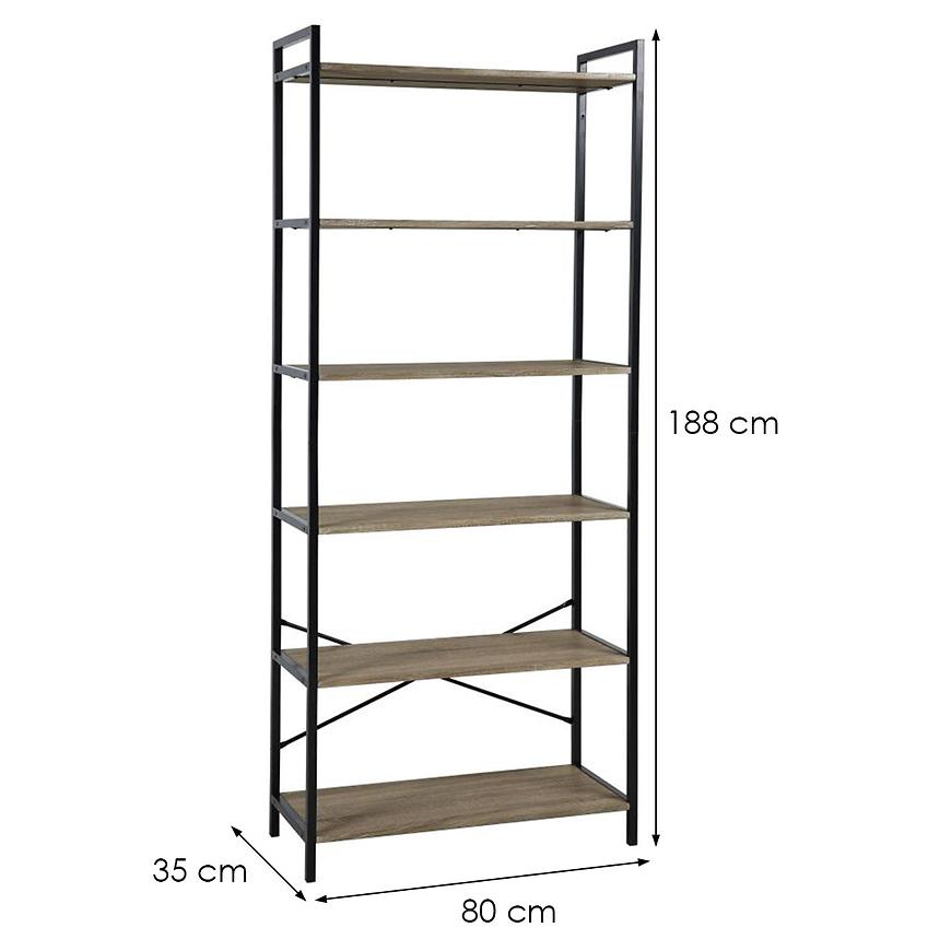 Regał Modesto 31365A-6(W80) to imponujący mebel, który łączy w sobie funkcjonalność z rustykalnym urokiem. Z szerokością 80 cm, wysokością 188 cm i głębokością 35 cm, ten regał nie tylko oferuje dużo miejsca do przechowywania, ale także stanowi efektowny element dekoracyjny.