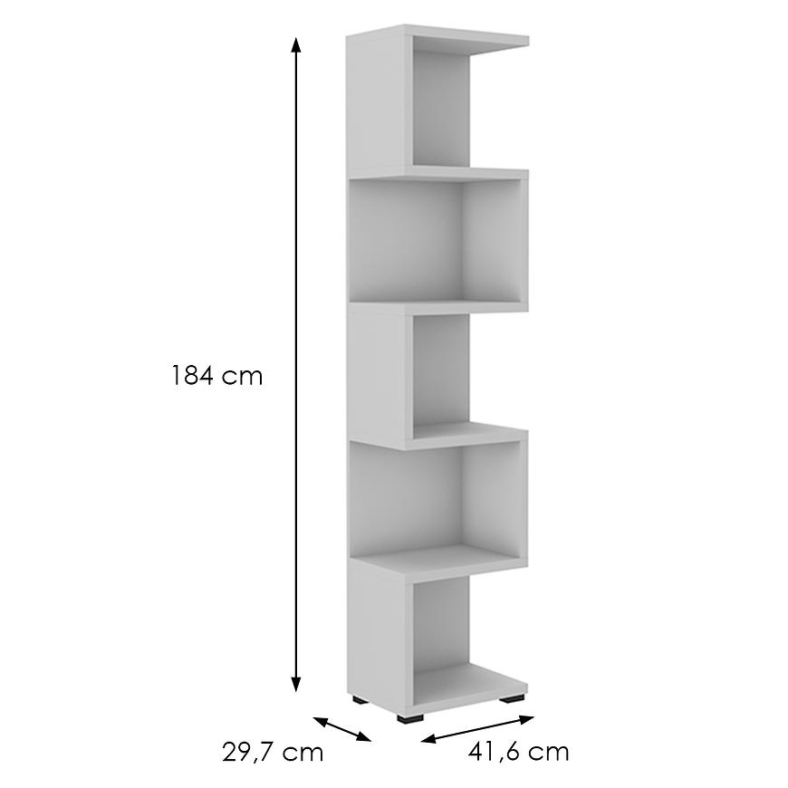 Kompaktowe wymiary regału czynią go doskonałym rozwiązaniem, nawet w mniejszych przestrzeniach. Jego szerokość wynosi 41,6 cm, co pozwala na umieszczenie go w różnych miejscach w pomieszczeniu. Z kolei jego imponująca wysokość 184 cm daje dużą ilość przestrzeni do przechowywania i eksponowania różnych przedmiotów. Głębokość wynosząca 29,7 cm zapewnia wystarczająco dużo miejsca dla książek, dekoracji, czy innych rzeczy.