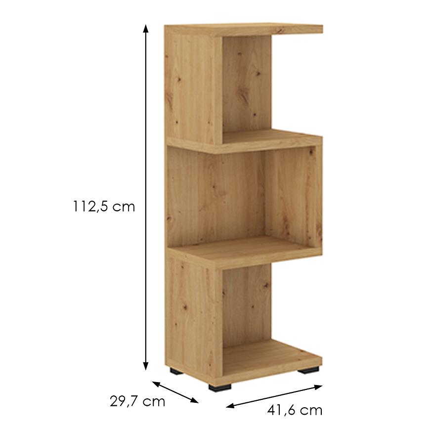 Ten regał posiada kompaktowe wymiary, co sprawia, że jest idealnym rozwiązaniem zarówno do mniejszych, jak i większych pomieszczeń. Jego szerokość wynosi 41,6 cm, co umożliwia umieszczenie go w różnych miejscach w Twoim domu. Z kolei wysokość sięgająca 112,5 cm oferuje wystarczająco dużo przestrzeni do przechowywania i eksponowania różnych przedmiotów. Głębokość wynosząca 29,7 cm sprawia, że regał jest wszechstronny i pomieści książki, dekoracje czy inne potrzebne rzeczy.