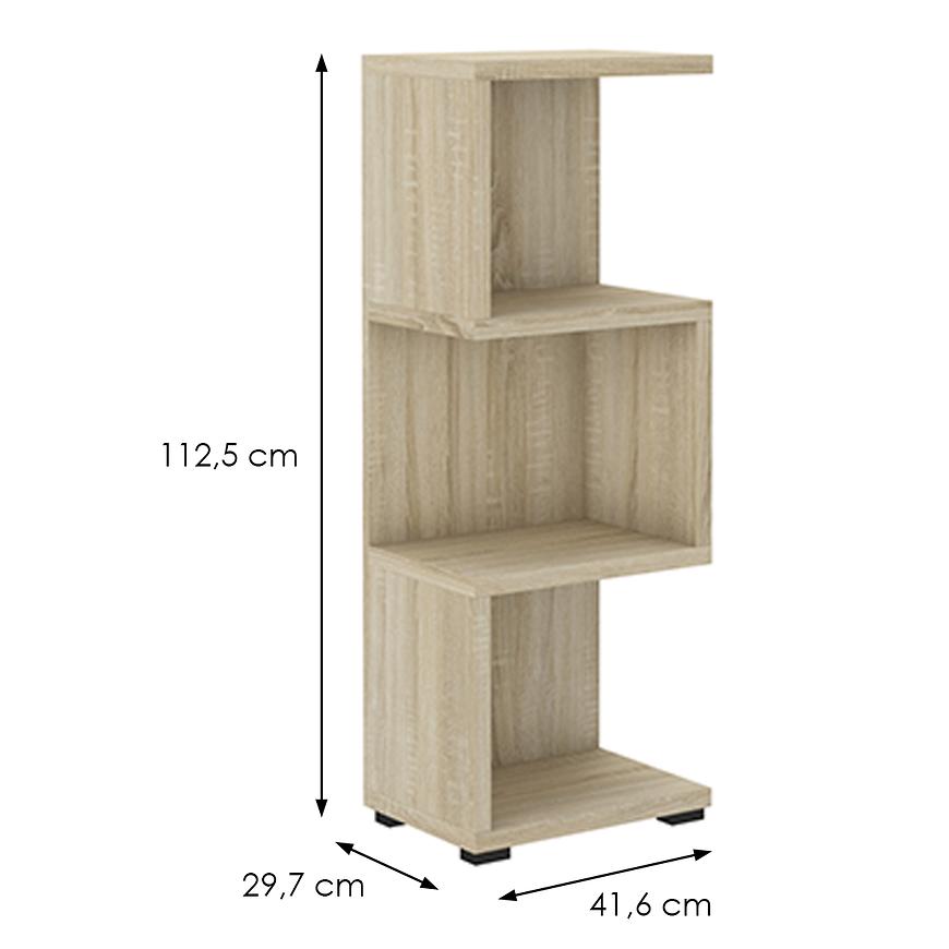 Ten regał posiada kompaktowe wymiary, co sprawia, że jest idealnym rozwiązaniem zarówno do mniejszych, jak i większych pomieszczeń. Jego szerokość wynosi 41,6 cm, co umożliwia umieszczenie go w różnych miejscach w Twoim domu. Z kolei wysokość sięgająca 112,5 cm oferuje wystarczająco dużo przestrzeni do przechowywania i eksponowania różnych przedmiotów. Głębokość wynosząca 29,7 cm sprawia, że regał jest wszechstronny i pomieści książki, dekoracje czy inne potrzebne rzeczy.
