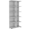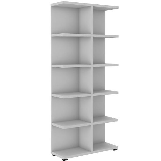 Regał More ma eleganckie wybarwienie w odcieniu szarości, co nadaje mu nowoczesnego charakteru. Konstrukcja korpusu oparta jest na płycie wiórowej laminowanej, co gwarantuje trwałość i odporność na uszkodzenia.