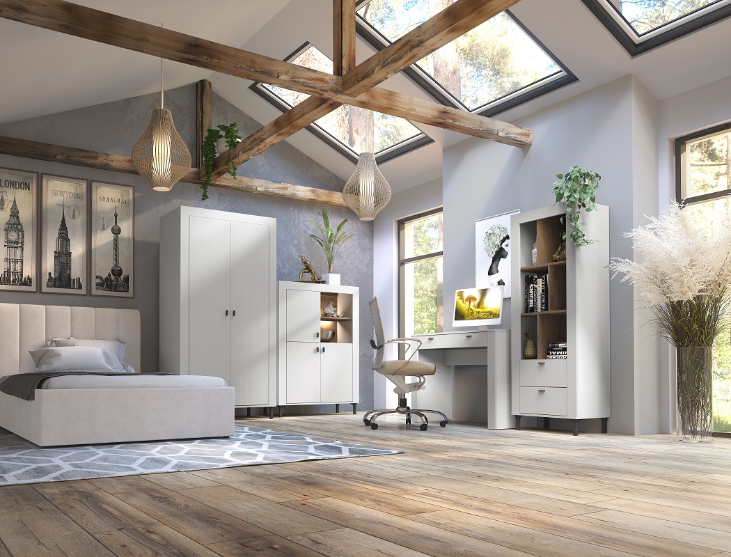 Regał Mossa MO4 to elegancki i funkcjonalny mebel, który doskonale wpasuje się w różnorodne aranżacje wnętrz, zarówno w pokoju dziennym, młodzieżowym, jak i sypialni. Jego nowoczesny design i przemyślane rozwiązania sprawiają, że jest to doskonały wybór do każdego rodzaju wnętrza, oferując zarówno przestrzeń do przechowywania, jak i estetyczny akcent.