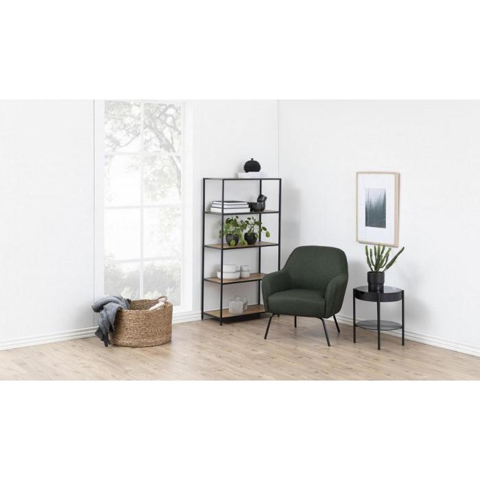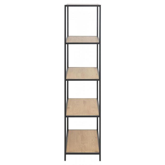Regał Eri to oryginalny mebel. Metalowa czarna rama z półkami przyciąga uwagę. Mebel posiada półki na których można postawić ramki ze zdjęciami, ozdobne figurki lub przyozdobić go kwiatami. Świetnie nada się do wnętrz w industrialnym lub loftowym stylu. Sprawdzi się w pokoju dziennym, salonie, kuchni oraz w innych, dowolnych pomieszczeniach. Ciekawy design sprawia, że będzie pasować do wielu aranżacji.
