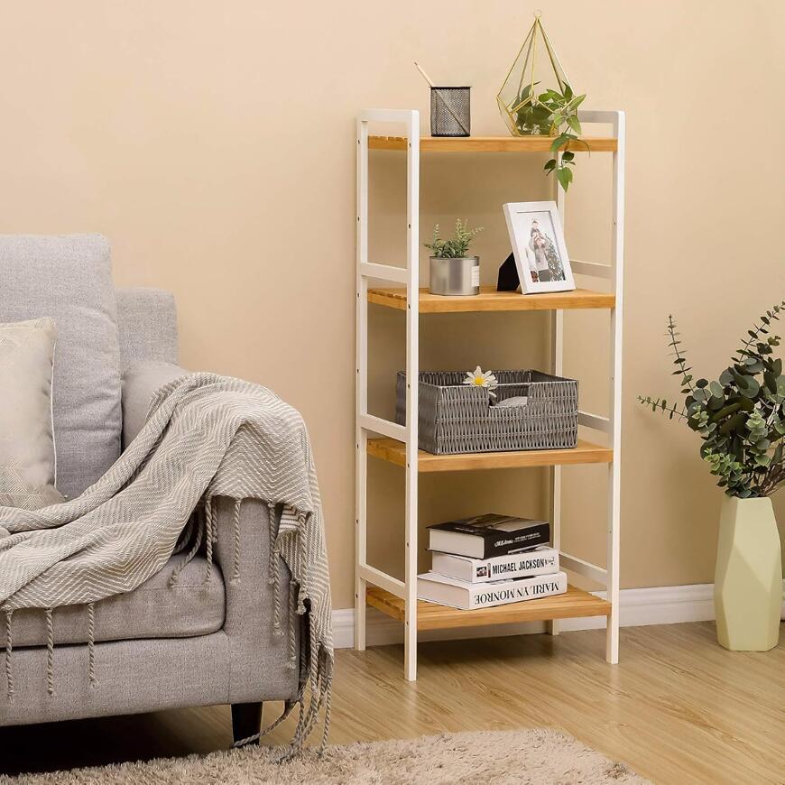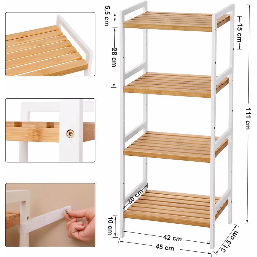 Praktyczny Regał Natural w kolorze biały/dąb jasny, idealny do łazienki, łączy funkcjonalność z nowoczesnym stylem. Wykonany z trwałych materiałów, zapewnia stabilność i łatwe utrzymanie w czystości. Wymiary: szerokość 45 cm, wysokość 111 cm, głębokość 31,5 cm, co pozwala na wygodne przechowywanie ręczników, kosmetyków i akcesoriów łazienkowych. Minimalistyczny design sprawia, że regał pasuje do różnych aranżacji wnętrz.