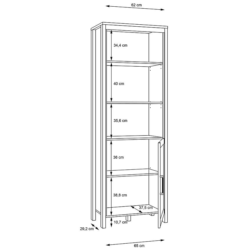 Jednodrzwiowy design regału Nepean pozwala na schowanie zawartości za eleganckimi frontami. To doskonałe miejsce na przechowywanie różnorodnych przedmiotów, zarówno tych codziennego użytku, jak i tych, które chcesz wyeksponować.