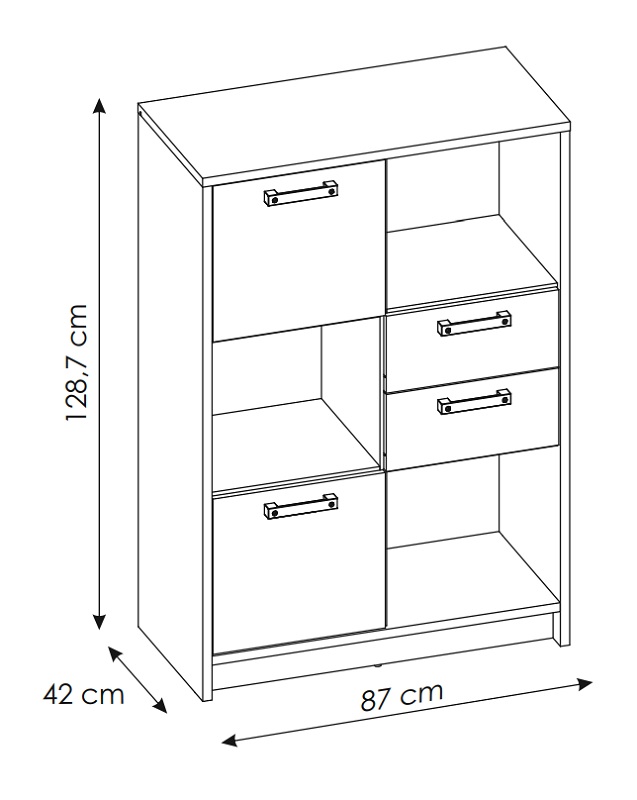 Regał niski Nubi 2D2S NUBR02 to solidny i funkcjonalny mebel do pokoju młodzieżowego, który łączy nowoczesny design z praktycznym przechowywaniem. Dzięki trwałym materiałom i przemyślanej konstrukcji regał pozwala utrzymać porządek w pokoju, jednocześnie wpisując się w estetykę nowoczesnych wnętrz.