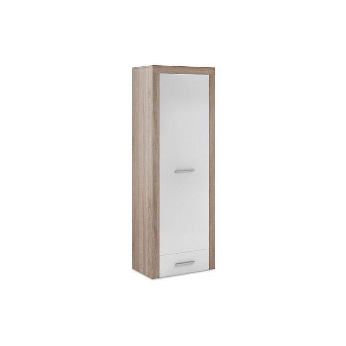 Zamknięty regał One 11 to doskonały mebel do przechowywania przede wszystkim tych przedmiotów, które warto chronić przed zakurzeniem – elementów zastawy stołowej czy serwisu kawowego. Sprawdzi się jednak również jako regał na książki czy wysoka bieliźniarka – posiada bowiem aż pięć półek i dodatkową dolną szufladę. Płyta laminowana grubości 16 mm zapewnia wytrzymałość mebla, zaś wymiary (68x42x192 cm) – to, że zmieści się nawet we wnętrzach o ograniczonej przestrzeni. Na uwagę zasługuje również oryginalne połączenie kolorystyczne. Regał One 11 posiada korpus z płyty w ciepłym kolorze dębu sonoma, zaś drzwi oraz front szuflady utrzymane są w błyszczącym odcieniu bieli. Dzięki temu mebel od razu rzuca się w oczy i pasuje do wnętrz utrzymanych w różnych stylach.