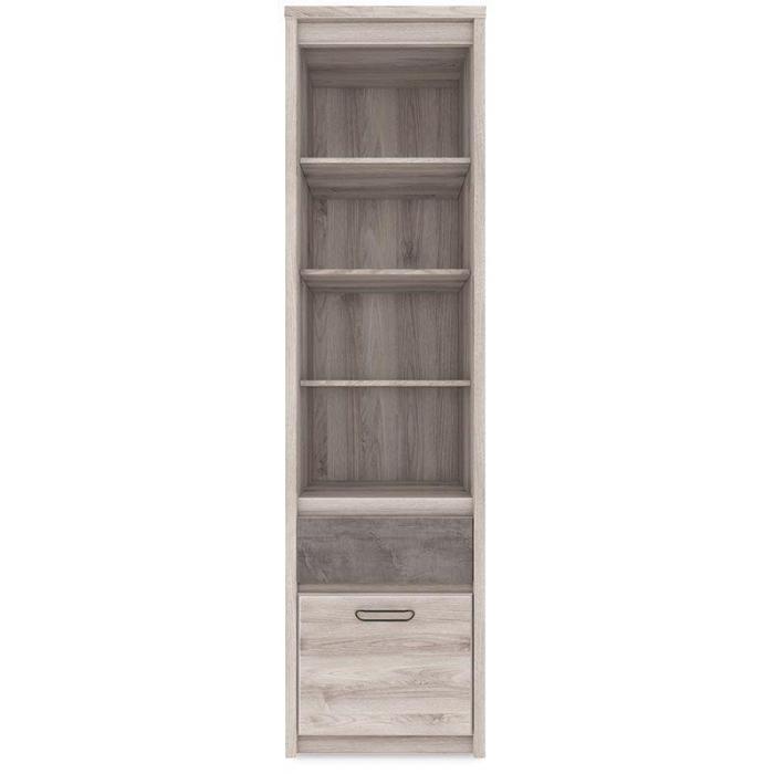 Nadmierna ilość książek wciąż spędza Ci sen z powiek, bo nie wiesz gdzie je umieścić? Regał otwarty Axer 2D to praktyczna przestrzeń dla fanów literatury, która umożliwi uporządkowanie i zaprezentowanie gościom ulubionej kolekcji książek. Regał za sprawą szuflady i dolnej otwieranej szafki cechuje się ogromną funkcjonalnością – pozwala na jeszcze lepsze przechowywanie drobnych rzeczy, które dotąd nie miały swojego miejsca. Uniwersalny wygląd regału sprawia, że znajdzie miejsce w każdym pomieszczeniu domu, począwszy od salonu, poprzez pokój młodzieżowy, kończąc na gabinecie. Delikatny szary odcień regału potrafi dopasować się do każdej gamy kolorów na ścianie. Regał otwarty Axer 2D to nowoczesny mebel, który będzie wyglądał schludnie, nowocześnie, a zarazem przytulnie wewnątrz Twojego salonu.