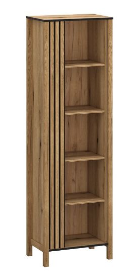 Regał otwarty Helios 10 to wyjątkowe połączenie funkcjonalności i nowoczesnego designu, zapewniające doskonałe miejsce do eksponowania oraz przechowywania. Wykonany z wysokiej jakości płyty meblowej laminowanej, prezentuje się w przyjemnym kolorze dąb evok z matowym wykończeniem, co nadaje mu elegancji i lekkości. Subtelne ryfle na frontach regału dodają delikatnego akcentu, wprowadzając do wnętrza nutę wyrafinowanego wzornictwa.