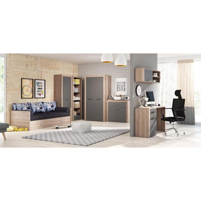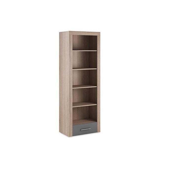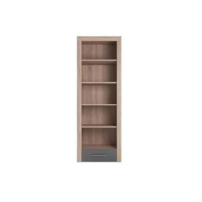 Regał otwarty Titto 8 posiada jedną podręczna szufladę, w komplecie posiada również 4 półki. Połączenie kolorystyki dębu z antracytem wpływa na nietypowy charakter mebla. Regał otwarty Titto 8 to połączenie nowoczesnego stylu z eleganckim wykończeniem. Mebel wpisuje się w charakter aktualnych trendów i na pewno sprawdzi się we wnętrzach utrzymanych w estetyce klasycznej i modernistycznej. Mebel przeznaczony do samodzielnego montażu, pakowany w dwie paczki o wymiarach: 1/2. 191,5x44,5x12,5; 2/2. 64x27x4.