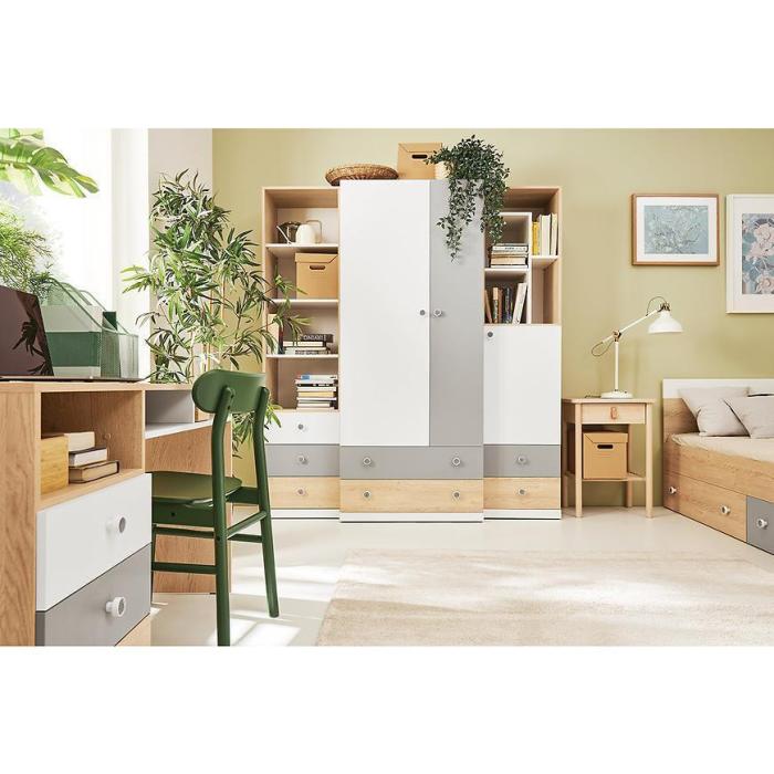 Nowoczesna kolekcja Pixel w kolorze biały/dąb biszkoptowy/szary to meble dedykowane do pokoju każdego nastolatka. Meble nie tylko świetnie wpiszą się w każdą aranżację, ale maksymalnie zagospodarują przestrzeń. Możliwość stworzenia własnej kompozycji pozwoli zachować wizualne oraz funkcjonalne walory całego pomieszczenia, będąc nie tylko wygodnym miejscem do wypoczynku czy spędzania wolnego czasu, ale także efektywnej nauki i funkcjonalnego zagospodarowania. Kolekcja Pixel spełni nie tylko funkcjonalne walory pomieszczenia, ale będzie także azylem Twojego dziecka, w którym będzie mogło spędzać wolny czas.