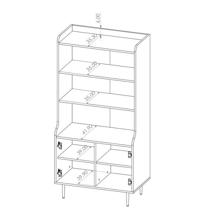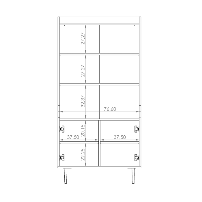 We wszystkich drzwiach zastosowano zawiasy szybkiego montażu z cichym domykiem, natomiast szuflady zostały wyposażone w prowadnice dolnego montażu - ze spowalniaczem. Tył mebli wykonany jest z czarnej płyty HDF o grubości 3mm. Szkło w poszczególnych bryłach jest hartowane.