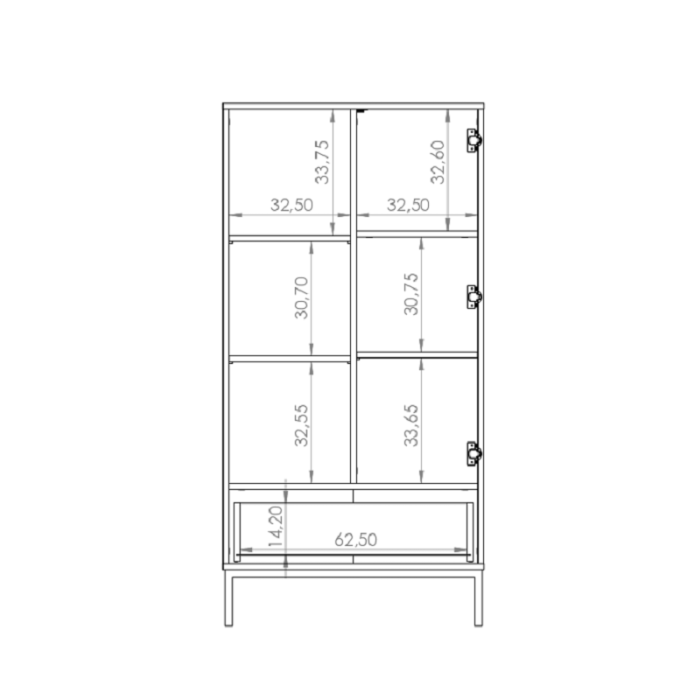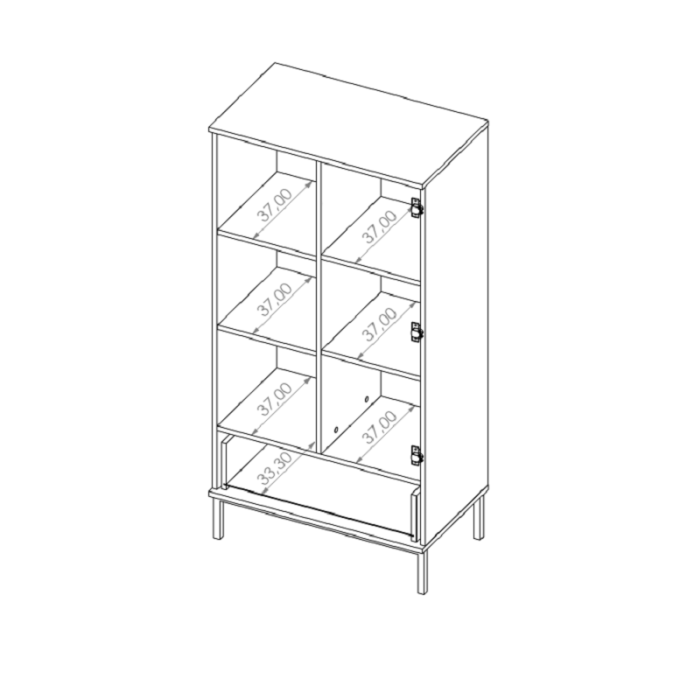 W skład systemu wchodzą następujące bryły: komoda 2D3S, komoda 4S, ława 60, ława 80, regał, szafka RTV 1D, szafka RTV 2D, szafka wisząca oraz witryna wysoka.