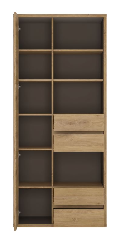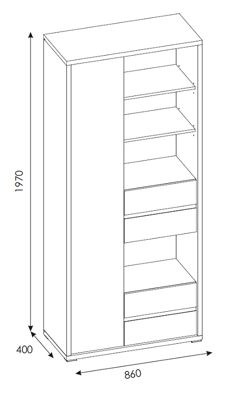 Dzięki swojej wszechstronnej formie regał Shetland 1D-4S TYP 12 odnajdzie się w wielu aranżacjach. W salonie może pełnić funkcję miejsca na książki i dekoracje, w sypialni – dyskretnego schowka na tekstylia, w gabinecie – praktycznego regału na dokumenty, a w pokoju młodzieżowym – przestrzeni na zabawki, gry i pamiątki. Jego pojemność i elegancki wygląd sprawiają, że łatwo dopasujesz go do różnych potrzeb i stylów wnętrz.