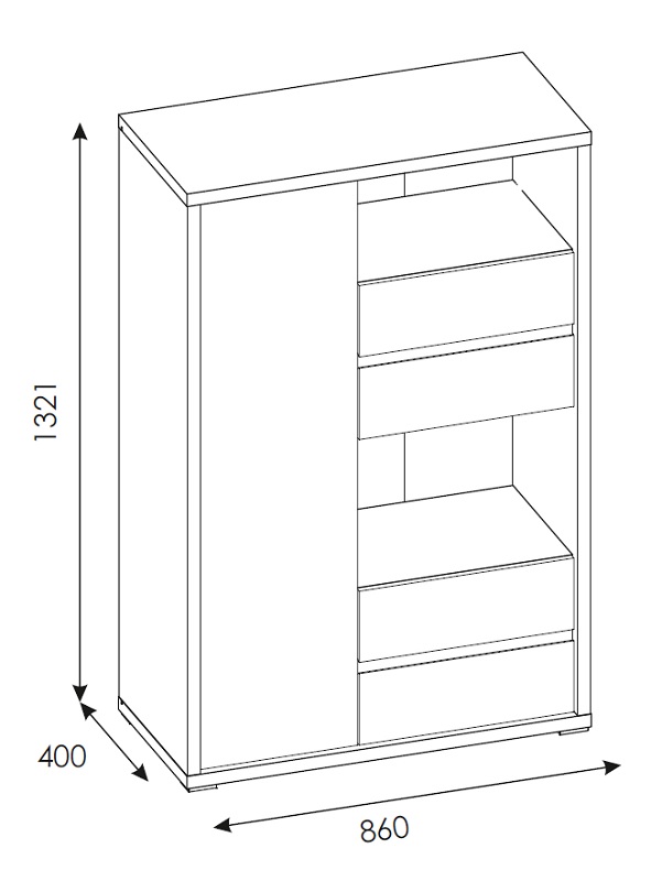 Regał Shetland 1D-4S TYP 31 to idealne połączenie estetyki i praktyczności. Dzięki przemyślanej konstrukcji, która obejmuje cztery pojemne szuflady, zamykaną szafkę oraz otwartą wnękę, mebel sprawdzi się zarówno w salonie, sypialni, biurze, jak i pokoju dziecka. Jego wysoka forma oraz funkcjonalny układ pozwalają na optymalne wykorzystanie przestrzeni, nawet w niewielkich pomieszczeniach, zapewniając miejsce do przechowywania i ekspozycji ulubionych przedmiotów.