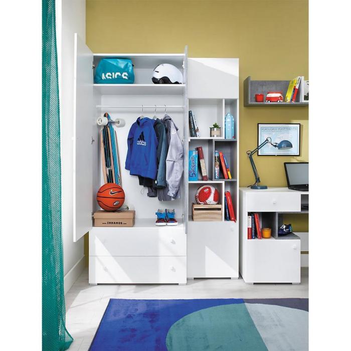Szafa narożna dwudrzwiowa oraz wariant z dodatkowymi półkami to odpowiedź na potrzeby efektywnego wykorzystania przestrzeni w pokoju młodzieżowym. Dzięki nim, odległe kąty pomieszczenia stają się cennym miejscem do przechowywania, zachowując jednocześnie spójność aranżacyjną.