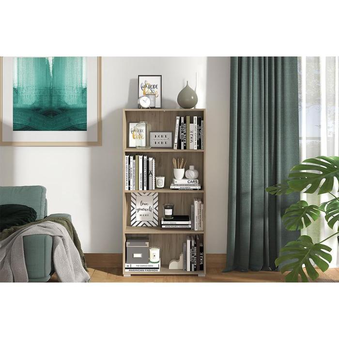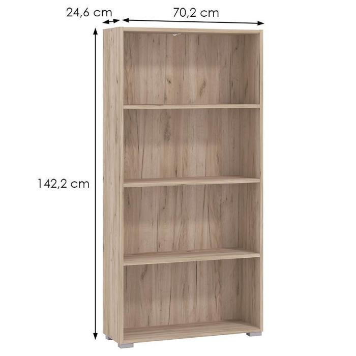 Regały z kolekcji Tomar to uniwersalne, klasyczne bryły, które wpiszą się świetnie w każdą z aranżacji. Regał Tomar wykonany z płyty wiórowej laminowanej nie tylko będzie miejscem na rodzinne pamiątki czy inne ozdoby, ale także praktycznym miejscem do przechowywania np. książek. Regały są pojemne, sprawdzą się zarówno w pokoju nastolatka, salonie czy sypialni.