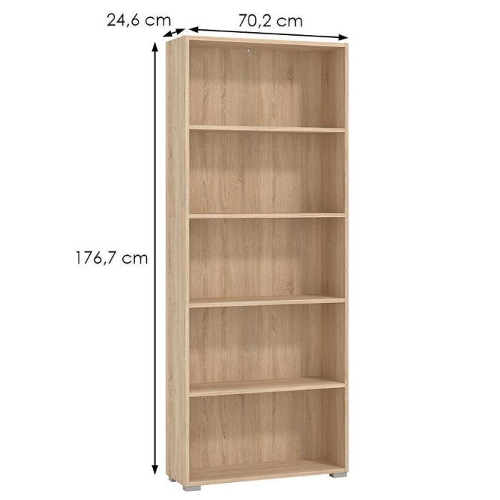 Regały z kolekcji Tomar to uniwersalne, klasyczne bryły, które wpiszą się świetnie w każdą z aranżacji. Regał Tomar wykonany z płyty wiórowej laminowanej nie tylko będzie miejscem na rodzinne pamiątki czy inne ozdoby, ale także praktycznym miejscem do przechowywania np. książek. Regały są pojemne, sprawdzą się zarówno w pokoju nastolatka, salonie czy sypialni.
