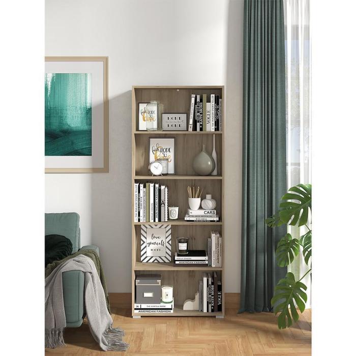 Regały z kolekcji Tomar to uniwersalne, klasyczne bryły, które wpiszą się świetnie w każdą z aranżacji. Regał Tomar wykonany z płyty wiórowej laminowanej nie tylko będzie miejscem na rodzinne pamiątki czy inne ozdoby, ale także praktycznym miejscem do przechowywania np. książek. Regały są pojemne, sprawdzą się zarówno w pokoju nastolatka, salonie czy sypialni.
