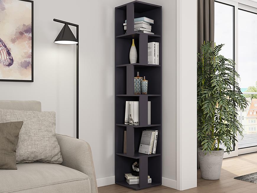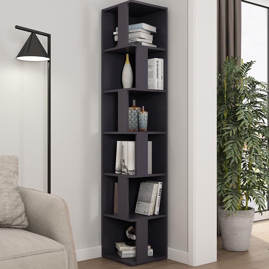 Regał Tower w kolorze grafit to wyrafinowany mebel, który doskonale łączy funkcjonalność z designerskim wyglądem. Jego korpus został wykończony matową powłoką, nadając mu elegancji i subtelnego uroku. Matowe wykończenie nie tylko dodaje regałowi luksusowego charakteru, ale także zapewnia trwałość, chroniąc powierzchnię przed zarysowaniami i zabrudzeniami.